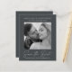 Salve o Anúncio de Casamento de Orçamento de Data. Script casual ultra-fino moderno escrito à mão sobre foto emoldurada. Layout totalmente versátil do estilo do faça-você-mesmo. Modelo de edição fácil — clique em "Personalizar mais" para alterar o tamanho, as cores e o posicionamento de todos os elementos.