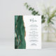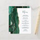 A borda esquerda deste elegante cardápio moderno de casamento apresenta uma esmeralda verde aquarela agata borda com falsa brilho dourado. O texto personalizável combina o script de escrita manual de cinzas de carvão branco e as fontes de impressão em um fundo branco. O verso apresenta um design emerald verde e dourado.