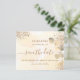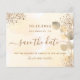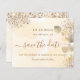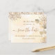 Um fundo de cor aquosa de ouro decorado com folhagem de eucalipto ouro e pó de dourado falso. Personalize e adicione a data, o local e seus nomes. Letras coloridas com ouro. O texto: Salvar a Data é gravado com um script de estilo com letra de tendência grande.