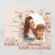 Um moderno, na moda e romântico Guarde o Cartão de Data para um casamento. Creme, fundo colorido de pêssego, estrutura de arco, decorada com flores creme. Personalize e adicione sua foto e a data na frente. Os detalhes no verso. 1 folha = 1 convite impresso de borda a borda.