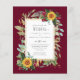 Linda coloração d'água, burgundy marsala, Rosas com girassóis amarelos víboros e folhas verdes e verde-salva com uma estrutura de ouro neste moderno país, ruidoso item de casamento. Parte de uma coleção maior, incluindo convites para casamento (faixa orçamentária) rsvps. salve as datas, etiquetas de favor e adesivos para presentes, cartas de agradecimento, presentes para noivas, presentes para recém-casados e muito mais.