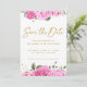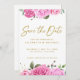 Rosas cor-de-água rosa moderna com fonte de estilo manuscrito de ouro personalizável "Salvar a Data". Este design apresenta belas rosas cor-de-rosa e uma grande fonte de estilo caligráfico que você pode mudar de ouro para qualquer outra cor que quiser. Você também pode personalizar todos os detalhes e cores de texto neste design Salvar Data.