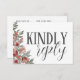 Torne fácil para seus hóspedes responder em estilo com esta única carta RSVP moderna, lindamente adornada com folhagem botânica rústica em terracota quente e tons verdes sensuais. A design apresenta ilustrações originais de aquarela que evocam uma estética natural e romântica — perfeita para casamentos de vassoura, rústicos, ao ar livre ou de outono.