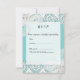 Na moda e azul elegante, pérolas e cartão RSVP de casamento Lace design. Personalize este modelo de resposta ou adicione seu próprio design.