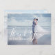 Um design elegante para você personalizar com suas fotos de casamento. Selecione duas das suas imagens horizontais favoritas do dia do seu casamento. Idealmente, selecione um em que os dois sejam deslocados para a direita e outro em que você esteja para a esquerda. Use o exemplo de fotos. A cor do texto pode ser alterada para coordenar com a sua foto. Ao contrário, você adicionará uma mensagem pessoal. Para garantir a legibilidade, foi adicionada uma camada semitransparente sobre a foto, dando-lhe uma aparência romântica suave. Mais uma vez, use o texto de exemplo como guia, para o comprimento. O texto pode ser movido por você para o menu de edição. Ou entre em contato com o designer que pode fazer isso por você. Foi usada uma letra elegante de roteiro de casamento.