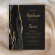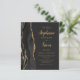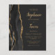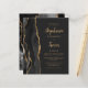 A borda esquerda deste elegante convite de casamento moderno apresenta uma coloração aquosa preta, borda agitada, aparada com falso brilho dourado. O texto personalizável combina o script de pincel de caligrafia dourada e as fontes sans serif em um fundo preto de ardósia. O verso apresenta um design de agate preto e dourado correspondente.
