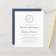 Este elegante design de convite de casamento apresenta um monograma de script azul indigo rodeado por uma coroa botânica de arte de linha. Os nomes aparecem no script de azul indigo, com o resto do texto na fonte de serif clássica. A parte traseira da placa é índigo sólido.