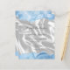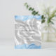 As bordas de cima e de baixo deste elegante convite de casamento moderno apresentam uma cor azul-d-água pastel com uma borda de cinza falsa. O texto personalizável combina escrita manual, fontes sans serif e itálicas em cinzas de carvão em uma imagem de fundo de seda branca. O lado inverso apresenta um agato azul bebê e design de seda branca.