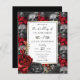 Vermelho Gótico, Dourado, Convites Florais Negra. Folhas Florais de ouro Faux. A fonte do script é realçada com a fonte de nome de serif de leitura fácil. Fácil de ajustar para as suas necessidades de casamento. Fundo com padrão de crânio