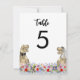 Essa noiva e noiva divertida de dinossauro em um cartão colorida de mesa de prados de flor silvestre irá deliciar seus hóspedes e trazer diversão de dino ao seu casamento temático de dinossauros. Torne fácil para seus convidados de casamento encontrar seu lugar no estilo de casamento de dinossauros Jurássicos. Basta adicionar o número da tabela para cada mesa usando os modelos simples para criar um gráfico de números de tabela de dois lados. Arte original da artista Catherine Sweetman