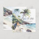 Minimalista de Verão Praia Destino Salve a Data. Projetado com linhas limpas, layouts arejados e tons suaves da costa, este cartão é perfeito para casais que planejam uma celebração moderna e romântica à beira-mar.