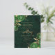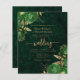Este elegante convite para o casamento apresenta buquês florais verdes disparados com verde folha de ouro em dois cantos, em uma imagem de fundo da emerald green watercolor agate. O texto personalizável combina fontes de serifa, itálico e escrita manual douradas. O verso fornece espaço para detalhes do casamento em um fundo verde de agata, junto com um código QR que os convidados podem digitalizar para visitar seu site e RSVP.