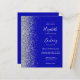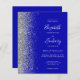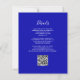 A borda esquerda deste elegante convite de casamento moderno apresenta uma borda falsa de prata. O texto personalizável combina manuscrito branco, fontes em copperplate e itálico em um fundo azul real. Adicione mais detalhes no verso, juntamente com um código QR para ajudar seus convidados a visitar seu site de casamento.