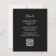 A borda esquerda deste elegante convite de casamento moderno apresenta uma borda falsa de prata. O texto personalizável combina a escrita manual de cinzas prateadas pálidas, fontes copperplate e itálico em um fundo preto. Adicione mais detalhes no verso, juntamente com um código QR para ajudar seus convidados a visitar seu site de casamento.