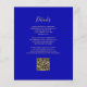 A borda esquerda deste elegante convite de casamento moderno apresenta uma borda falsa de ouro. O texto personalizável combina manuscrito dourado, copperplate e fontes itálicas em um fundo azul real. O verso fornece espaço para detalhes do casamento em um sólido fundo azul real, junto com um código QR que os convidados podem digitalizar para visitar seu site e RSVP, o que economiza o custo de imprimir e enviar cartões RSVP separados.