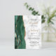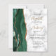 A borda esquerda deste elegante convite de casamento moderno apresenta uma esmeralda verde aquarela agate borda com falsa brilho dourado. O texto personalizável combina um script de escrita manuscrita dourado com fontes em preto e em itálico em um fundo branco e em mármore de cinzas. Adicione detalhes adicionais à parte traseira, juntamente com um código QR para ajudar os convidados a visitar o seu site de casamento.