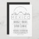 Um convite de casamento único para um casamento acontecendo no belo país do México. Este convite apresenta uma ilustração estilizada do horizonte único da cidade com seu nome embaixo. Esta é seguida pelas informações do dia do casamento em um estilo aberto igual. No verso do convite está uma cor de cinza profunda para complementar a aparência e o sentimento. Todos os elementos individuais do cartão de convite estão desbloqueados, portanto, sintam-se livres para alterar ou adicionar os detalhes necessários usando a função de personalização. Você pode adicionar uma foto ao verso e adicionar um filtro preto e branco a ele. Estão disponíveis placas RSVP, bandas de barriga, sacos de tote e muito mais.