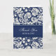 Cartão de agradecimento para os pais da noiva ou do noivo no dia do seu casamento. Elegante e sofisticado com padrão clássico de damasco floral vintage em azul sofisticado e creme esbranquiçado, a maneira perfeita de agradecer aos seus pais por todo o apoio no dia do seu casamento.