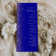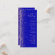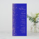 A borda esquerda deste elegante programa de casamento moderno apresenta um rosa dourado faux glitter design. O texto personalizável combina letras rosa pálidas, letras em copperplate e fontes itálicas em um fundo azul real.