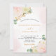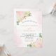 Um fundo branco com pincéis de cor rosa pincelado e rosa dourado com pinceladas de cor d'água. Decorados com flores impermeáveis, rosas cor-de-rosa floral, orquídeas brancas e gerbera amarela, verde eucalipto e borras de ouro falsas. Personalize e adicione seus nomes e detalhes do casamento. Letras pretas e ouros coloridas.