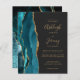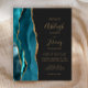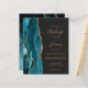 A borda esquerda deste elegante convite de casamento moderno apresenta uma coloração aquosa lacrimogênea aparada com uma falsa brilha de ouro. O texto personalizável combina manuscritos dourados, copperplate e fontes itálicas em um fundo de cinza de carvão escuro. O verso apresenta um design de chaleira e de agata dourada.