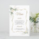 Design charmoso com flores brancas de cor aquosa, verduras e folhas de ouro, em fundo branco. Use a ferramenta Personalizar para adicionar suas informações. Os itens correspondentes podem ser encontrados na minha Coleção Floral Dourada do Verde.