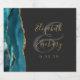 Este design de casamento moderno apresenta um agate de cor azul lacrimogênea e borda falsa dourada na borda esquerda. Personalize-o com os nomes dos casais em um elegante guião de manuscrito dourado sobre uma grande seringa de cinza e em fundo preto, com a data do casamento abaixo.
