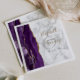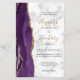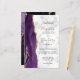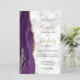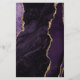 A borda esquerda deste elegante convite de casamento moderno apresenta uma cor d'água roxa, borda agitada, aparada com falso brilho dourado. O texto personalizável combina manuscrito preto e dourado, fontes em copperplate e itálico em uma cinza e fundo de mármore branco. O verso apresenta um design de agate roxo e dourado correspondente.