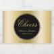 Estas elegantes etiquetas de vinho espumante de casamento personalizadas contêm a palavra "Cheers" com os primeiros nomes da noiva e do noivo e a data do casamento em uma falsa caligrafia de ouro sobre um simples fundo negro. Por favor, veja o nosso compro I Love Weddingz para encontrar mais seleções nesta coleção. Desenhada por Susan Coffey.