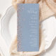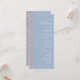 A borda esquerda deste elegante programa de casamento moderno apresenta um rosa dourado faux glitter design. O texto personalizável combina manuscrito branco, fontes em copperplate e itálico em um fundo azul empoeirado.