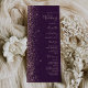 A borda esquerda deste elegante programa de casamento moderno apresenta um rosa dourado faux glitter design. O texto personalizável combina letras rosa pálidas, letras em copperplate e fontes itálicas em um fundo roxo escuro.