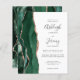 A borda esquerda deste elegante convite de casamento moderno apresenta uma esmeralda verde aquarela agate borda aparada com falsa rosa dourada. O texto personalizável combina a escrita manual de cinzas de carvão, as fontes em copperplate e itálico em um fundo branco. O verso apresenta um design emerald verde e rosa dourado.