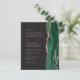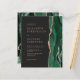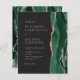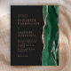A borda direita deste elegante e moderno convite de casamento apresenta uma esmeralda verde aquarela agate borda aparada com falsa rosa dourada. O texto personalizável combina fontes poeirentas cor-de-rosa rosa, copperplate e itálico num fundo preto ardente. O verso apresenta um design emerald verde e rosa dourado.