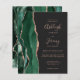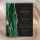 A borda esquerda deste elegante convite de casamento moderno apresenta uma esmeralda verde aquarela agate borda aparada com falsa rosa dourada. O texto personalizável combina a letra rosa-rosa, a letra copperplate e a letra itálico num fundo preto estável. O verso apresenta um design emerald verde e rosa dourado.