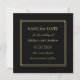Com elegância clássica este casamento, salvar o cartão de data transmite um sentido de estilo. Um quadro quadrado duplo fino em ouro rodeia o seu texto. O emparelhamento de fontes transmite suas informações em estilo saboroso. O fundo preto e a forma quadrada acrescentam uma formalidade adorável ao design. Personalize o modelo de texto com seus detalhes.