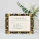 A registrar o cartão de resposta RSVP que ajustado convites de 5 x 7 e de tamanho quadrado. NOTA: este é um design impresso plano, não há nenhuma lente real ou tinta metálica dourada usada. DESIGN: Perfeito para a Manor House Inglesa Casamentos inspirados que têm um talento Edwardiano ou vitoriano. Esta imagem é um estilo marroquino de videira tendril padrão floral repete que levamos uma nota para um estilo formal de gravata preta, conjunto de convites para o casamento. Fundo preto com brilho de ouro que parece muito realista e tem espirais intrincadas, rolhas e floresces. Há texto de fonte de caligrafia manual embutido no design, você simplesmente muda suas informações usando os campos de modelo. Um conjunto completo de produtos de casamento, noivado e noiva está incluído nesta coleção. Da decoração de recepção, à decoração de casais e chás de panela, nós temos você coberto! Outras combinações de cores disponíveis.