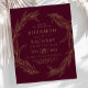 Um clássico design botânico, com uma coroa formada por dois grampos graciosos de folhagem de arte de linha de ouro. Edite facilmente o texto dourado em um fundo burgundy. A parte de trás do cartão é uma arma sólida.