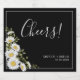 O design de etiqueta de garrafa bonito e dramática apresenta margarida branca canto sobre fundo preto com blocos de texto personalizáveis brancos em fontes modernas