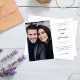 ** SATIN PAPER É PAPEL FINO. ATUALIZE O PAPEL PARA OBTER UM PAPEL MAIS ESPESADO. TEM UMA OPÇÃO PARA ENVELOPES. *** Economize dinheiro em convites com este convite menor que tem uma opção para envelopes. Prepare seus hóspedes para a incrível recepção de casamento com seu convite para o casamento da caligrafia do Side Photo Mod Elegant. Quer uma versão maior? Veja a nossa coleção de Casamentos Fotográficos para obter cartas. https://www.zazzle.com/collections/black_white_calligraphy_photo_simple_invitations-119957073450173811?rf=238937196885903396