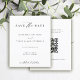 Clássico script de caligrafia formal minimalista do casamento do BUDGET, salve o cartão de data com seu CÓDIGO QR. +++++++ Adequado para qualquer estação e tema. +++++++++ Fácil de personalizar com o seu texto! +++++++ LEIA ISTO ANTES DE COMPRAR! Este é um cartão de casamento de barato orçamentário impresso em uma folha de papel (cada folha tem um cartão). +++ Para obter a melhor qualidade de preço, nosso conselho é escolher o tipo de papel Semi-Gloss (é espesso o suficiente para ser usado para papelaria) +++ Se você precisar de envelopes, escolha a OPÇÃO ENVELOPE. ++ Verifique duas vezes todas as informações e a ortografia do seu texto porque você receberá exatamente o que você vê - ninguém mais verificará nada antes de imprimir. +++ Esta placa foi projetada para o tamanho de 4,5" x 5,6". Caso você escolha outro tamanho do cartão e o texto saia da página, tudo precisa ser corrigido antes de adicionar o produto ao carrinho. Peça ajuda ao Serviço de Design ao Vivo.