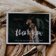 Expresse a sua gratidão e obrigado aos seus convidados pela sua presença e pelos seus belos presentes com este cartão com fotos personalizável com uma tipografia moderna. Basta adicionar sua foto favorita de casamento, mudar as cores e escrever sua própria obrigado.