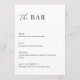 Um símbolo de casamento moderno e elegante para o menu "o bar" apresenta um design preto e branco minimalista. Personalize com o menu da bebida de casamento com a modelo fácil de editar, com uma fonte elegante de script e uma fonte de serifa elegante. Verifique os itens correspondentes na coleção "Modern Elegant".