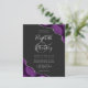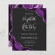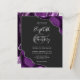 Uma design de cor d'água púrpura, aparada com brilho falso prateado, aparece em dois cantos deste elegante design. Personalize-o com os nomes dos casais em cinzas prateadas, guiando-o por uma grande e grande cinza. Adicione os detalhes do casamento em quadrinhos e fontes itálicas em um fundo branco. O verso apresenta um design de agata prateado e roxo correspondente.