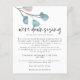 Baixando Casamento do Script Eucalyptus. Um alternativo de 4,5 pol x 5,6 pol com preço inferior. Disponível em um STOCK DE CARTÃO SEMI-GLOSS 110 lb, que é a opção padrão (mais espesso para convites), OU um STOCK de PAPEL THINNER FINISH 80 lb FINISH (ideal para gabinetes). Os envelopes são um extra opcional e são ligeiramente maiores que o tamanho da placa. Por vezes, quando uma cerimônia de casamento social mais pequena é essencial e você precisa desconvidar alguns hóspedes e pedir a eles para se juntarem ao vivo, esta design contemporânea tem um ramo moderno artístico de folhas de eucalipto aquáticas do topo esquerdo e do roteiro informal de na moda de escrita manual para o título, Estamos Redimensionando. O resto do texto que você pode personalizar facilmente com seus detalhes. Você também pode alterar a cor de fundo azul-lacre de coordenação na parte traseira para outra cor, se desejar através da opção Personalizar Mais.