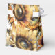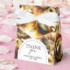 Estas caixas de favoritos de casamento apresentam girassol aquoso em tons de amarelo ouro. As palavras "Obrigado" são definidas na tipografia de tendência. Use os campos modelo para adicionar seus nomes personalizados com data do evento. Para ver todo o tema do casamento visite www.zazzle.com/dotellabelle Arte a aquarela exclusiva e design exclusivo para Fazer A Belle.