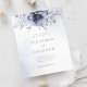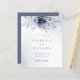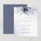 Um casamento floral moderno e elegante salva os cartões de data com flores azuis empoeiradas, com caligrafia manuscrita.