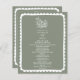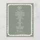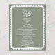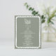 Ilustração de arte em linhas de flores sobre fundo verde sage. Texto branco e borda recortada desenhada à mão.