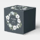 Caixas de favoritos de casamento florais com coroa branca e texto personalizável - você pode adicionar noivas e nomes de noivas e data de casamento, impressas em fundo escuro