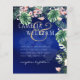 Tema moderno das folhas da ilha Real Azul tropical e das flores design. Os itens de coordenação com este design podem ser encontrados na coleção em anexo, que inclui convites para casamento, rsvp, salvar as datas, sinal de boas-vindas, adesivos, programas, menu, convites de chá de panela, janto de ensaio, convites para o conselho da nuestra, convites orçamentários e muito mais. Este tema de design é perfeito para o seu destino, praia, ilha tropical, casamento de verão. Design por marca registrada LeahG.