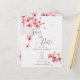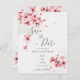 Um casamento floral moderno e elegante salve o cartão de data com flores de cereja cor-de-rosa pincelada e caligrafia moderna em uma textura de papel feita à mão.